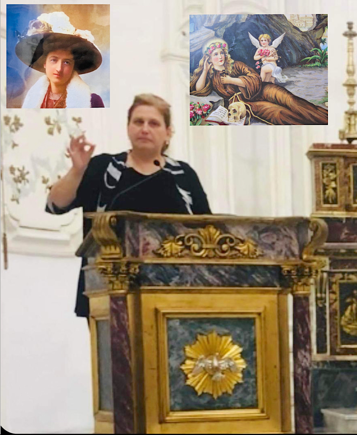 “Due donne, entrambe di fede testimoniata fattivamente, seppur in modalità diverse”, ha esordito Irene Catarella, “Entrambe ci dimostrano che la santità è per tutti, anche se può essere raggiunta attraverso diversi stili di vita, ma sempre all’insegna del Vangelo. Rosalia santa eremita che volendo essere sposa di Cristo, rifiutò di obbedire al padre che le voleva imporre un matrimonio combinato, nascondendosi nelle grotte e nella natura, Armida attiva nel sociale, il cui operato ha cambiato il modo di vivere di tanti”. Irene Catarella ha, poi, narrato il proficuo operato della Barelli, fondatrice della Gioventù Femminile di Azione Cattolica, dell’Università Cattolica di Milano e dell’Istituto Secolare delle Missionarie della Regalità di Cristo, il suo essere Terziaria Francescana vissuta nel periodo delle due guerre mondiali, vera anticipatrice del Concilio Vaticano II grazie alla sua ferma convinzione che i laici potessero fare tanto per promuovere la fede nella quotidianità e alla sua instancabile azione nella società illuminata dalla fede incrollabile nel Sacro Cuore di Gesù, alla quale ha voluto che fosse dedicata l’Università Cattolica milanese.