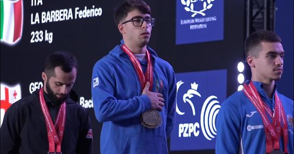 Federico La Barbera è stato protagonista di una prova maiuscola, argento nello strappo sollevando 103 kg di strappo e oro nello slancio con 130 kg che gli hanno consentito di salire sul gradino più alto del podio con 233 kg, bissando il titolo conquistato nel 2023 in in Romania e migliorando il suo totale di 7 kg.