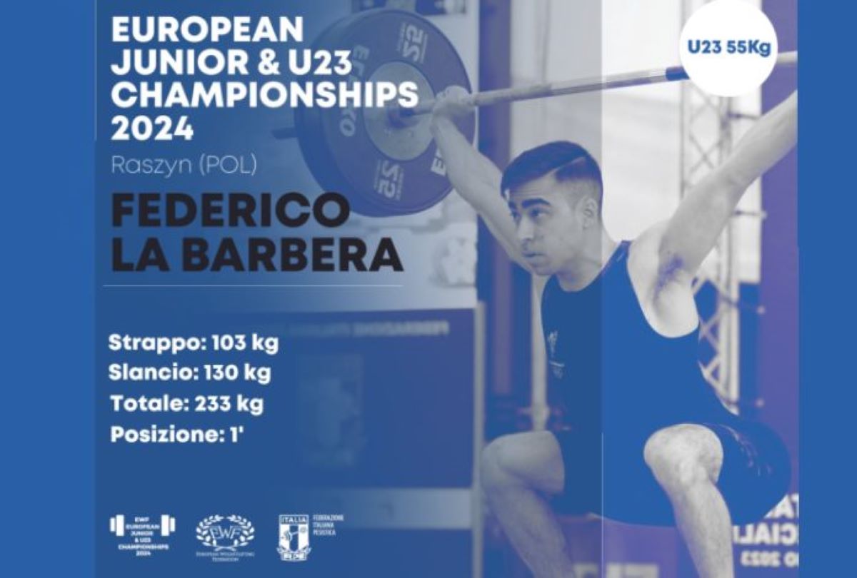 La Sicilia grande protagonista agli Europei Under 23 di sollevamento pesi in via di svolgimento a Raszyn in Polonia. Il nisseno Federico La Barbera (Gs Fiamme Oro) si è laureato per la seconda volta consecutiva campione Europeo Under 23 nella categoria fino a 55 kg e la palermitana Giulia Miserendino (Gs Fiamme Oro) ha vinto l'argento nella categoria 64 kg.