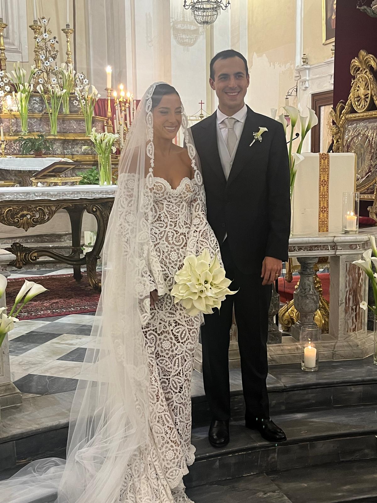 Alberta Santuccio e il marito Francesco Aragona il giorno del loro matrimonio
