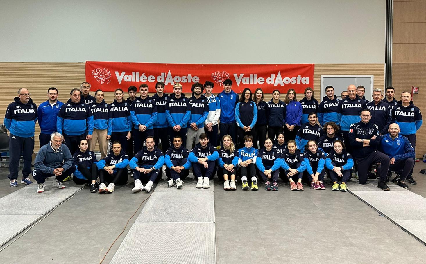 Le squadre azzurre di spada xon il c.t. Dario Chiado durante il ritiro pre-Coppa del Mondo a Champoluc