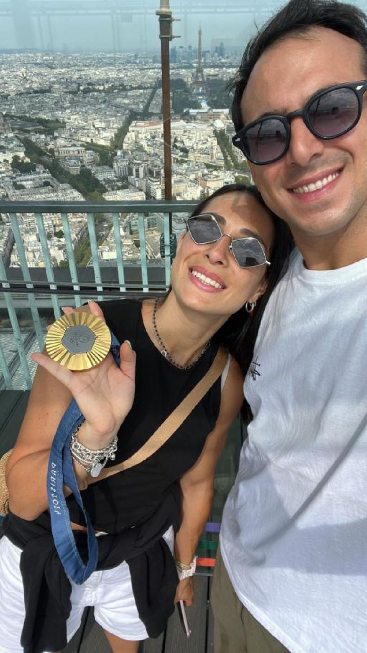 Alberta Santuccio con l'oro olimpico e il marito Francesco Aragona a Parigi