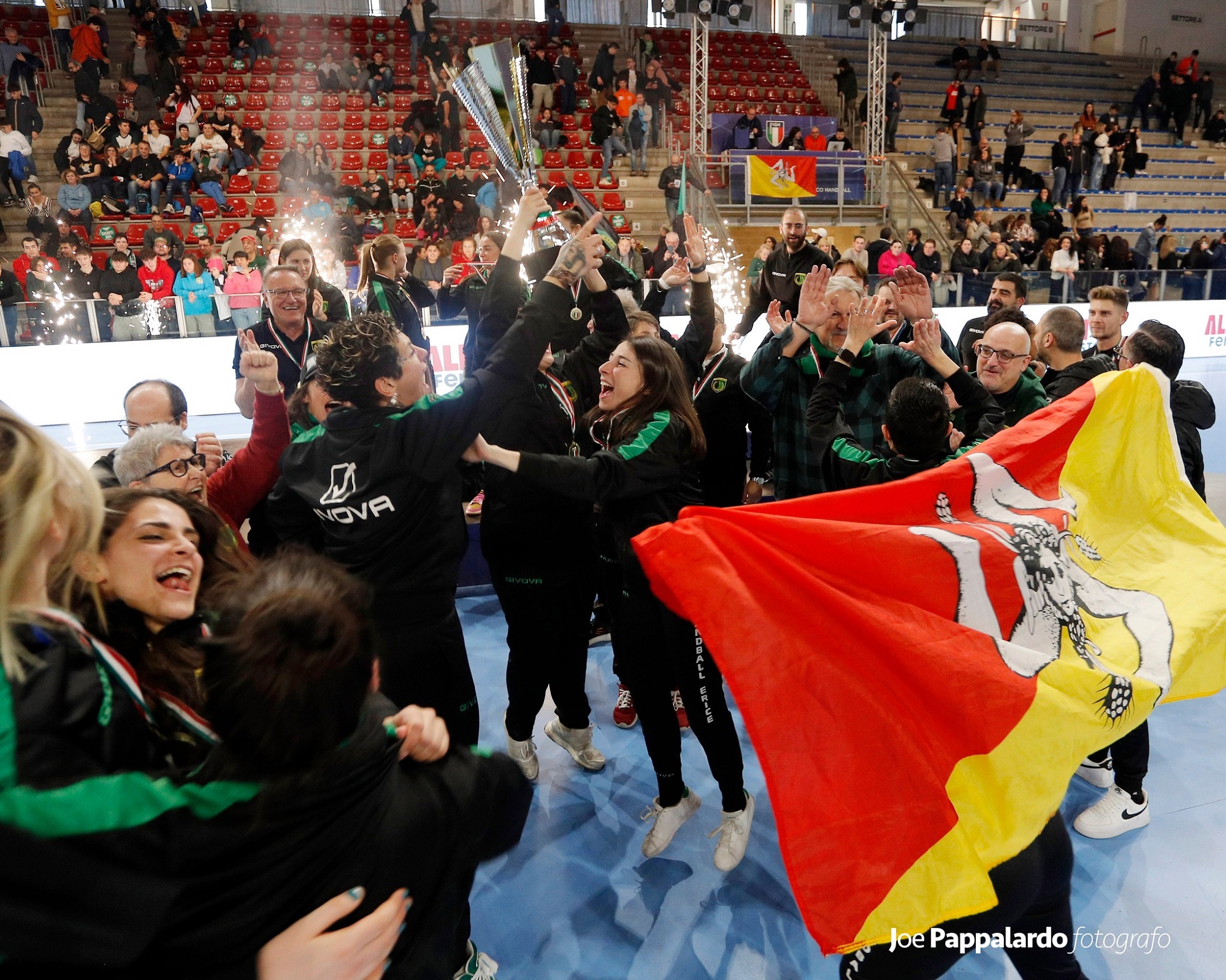 In copertina l'Handball Erice, detentrice del trofeo che ha vinto anche nel 2023 e vincitrice della Supercoppa 2024 e quest'anno attuale leader in A1 e in piena corsa per la conquista del primo scudetto della sua giovane storia.