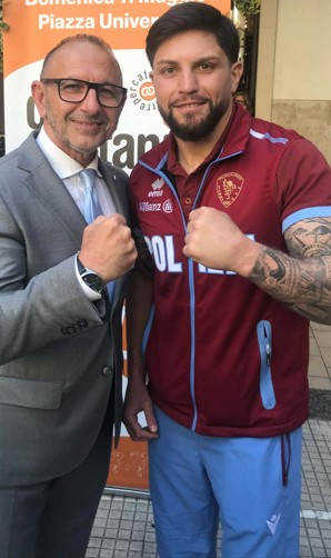Il questore di Catania Giuseppe Bellassai e l'olimpionico di pugilato Salvatore Cavallaro