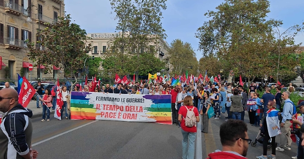 Un migliaio di manifestanti ha gridato no alle guerre sì alla pace anche a Palermo in occasione della giornata di mobilitazione nazionale in 7 città italiane. Il corteo partito da piazza Croci ha raggiunto piazza Verdi davanti al teatro Massimo. Tanti gli striscioni contro la guerra. Dietro esponenti politici, sindacali uomini, donne e studenti. Hanno aderito all'appello lanciato da Europe for Peace, Rete Italiana Pace Disarmo, Fondazione PerugiAssisi per la cultura della pace, Sbilanciamoci e Coalizione AssisiPaceGiusta. Nel manifesto che accompagna la mobilitazione si chiede anche "una conferenza di pace Onu, per il rispetto e l'attuazione del diritto internazionale, dei diritti umani, del diritto dei popoli all'autodeterminazione, per il riconoscimento dello stato di Palestina, per risolvere le guerre con il diritto e la giustizia". I manifestanti hanno chiesto "una risoluzione nonviolenta delle guerre e una politica estera italiana ed europea di pace, di cooperazione e di sicurezza comune". Da qui, il no al riarmo, all'aumento delle spese militari, alla produzione e diffusione delle armi nucleari e all'invio di armi ai paesi in guerra".