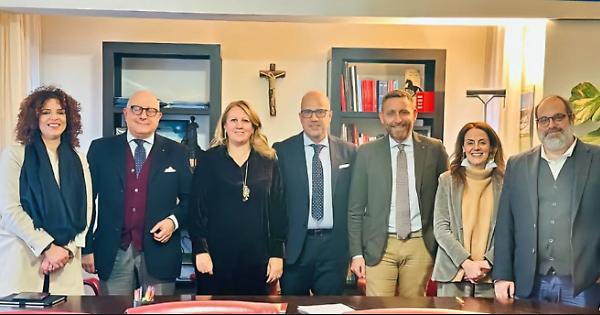 Sopra Arcangela Saverino, vicepresidente della Cts, prima da sinistra nella foto dell’insediamento del 7 marzo