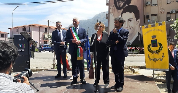 È stato inaugurato stamattina a Capaci (Palermo) il murale realizzato dall'artista Igor Scalisi Palminteri che ritrae gli agenti della Polizia di Stato dell'auto "quarto Savona Quindici" Vito Schifani, Rocco Dicillo e Antonio Montinaro che scortavano Giovanni Falcone al momento della strage. Si tratta di un progetto di arte urbana che coinvolge tutta la Sicilia, per creare una via dell'arte e degli eroi, per sviluppare una cultura della legalità. Il murale è stato realizzato nell'ambito del progetto 'Le Strade da seguire' della Fondazione Federico II. "Si tratta di una pugnalata che si rinnova - ha detto Maria Falcone - perché questi volti sembrano assolutamente veri, ma siamo veramente felici che vengano ricordati attraverso questa opera. E se si pensa che 33 anni fa c'era chi si lamentava scrivendo ai giornali perché infastidito dalle sirene delle scorte, oggi ne abbiamo fatti di passi avanti". "Davanti a questo non c'è altro che dolore - ha detto Tina Montinaro vedova di Antonio - Lo stesso dolore che si riprova sempre anche dopo 33 anni. Però è importante che tutti loro siano ricordati perché d'esempio per i giovani e per capire quanto è determinante lavorare per liberare la Sicilia dalla mafia". "Oggi - ha detto il presidente dell'Assemblea regionale siciliana Gaetano Galvagno - ricordiamo le vittime della strage di Capaci ed in particolare gli agenti Montinaro, Dicillo e Schifani, perché è vero che i nostri fari sono eroi come Falcone e Borsellino, ma ci sono state altre persone che hanno sacrificato la propria vita nella lotta alla mafia. Vogliamo così raccontare la Sicilia di uomini come Carlo Alberto Dalla Chiesa, Boris Giuliano, Rosario Livatino e dei tanti altri che non hanno chinato la testa. Lo facciamo proprio per contrastare il racconto sbagliato che certa cinematografia fa della nostra terra che non è, lo ribadisco, la terra di Riina e Provenzano". Il presidente dell'Ars e della Fondazione Federico II, ha inoltre sottolineato le tante richieste che stanno pervenendo alla Fondazione Federico II da parte di altre amministrazioni comunali che intendono installare "questi presidi di memoria e legalità nelle loro comunità. All'inaugurazione sono intervenuti anche Pietro Puccio sindaco di Capaci, il questore di Palermo, Maurizio Calvino, il deputato regionale Mario Giambona deputato, il colonnello Ivan Boracchia, comandante del reparto operativo del comando provinciale dei carabinieri di Palermo, il capitano Luca Merella, Comandante della compagnia carabinieri di Carini, l'artista Igor Scalisi Palminteri, alcuni sindaci del comprensorio.