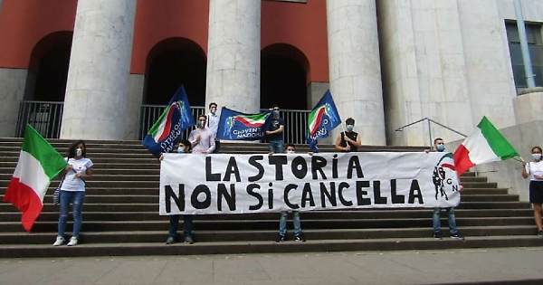 PALERMO - Blitz questa mattina a Palermo, davanti al Palazzo delle Poste in via Roma, di Gioventù Nazionale (movimento giovanile di Fratelli d’Italia). I militanti della giovane destra hanno aperto uno striscione con la scritta «La storia non si cancella» per protestare contro la campagna vandalica e oscurantista, partita dagli Stati Uniti ed arrivata in Europa, che ha come bersaglio le statue ed i monumenti storici. Il luogo simbolico scelto a Palermo è stato lo storico edificio delle poste centrali, massima espressione in città dell’architettura razionalista degli anni '30 (all’interno si trovano anche le famose stanze futuriste). L’edificio già negli anni scorsi è stato oggetto di atti vandalici con simboli e scritte riconducibili all’estrema sinistra.