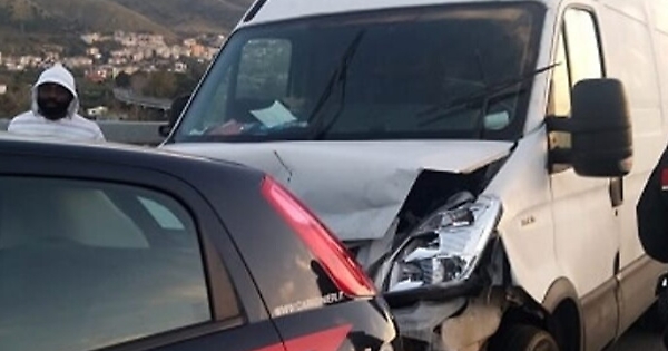 Auto Cc ferma folle corsa di un furgone senza freni sulla Palermo-Sciacca: 6 feriti