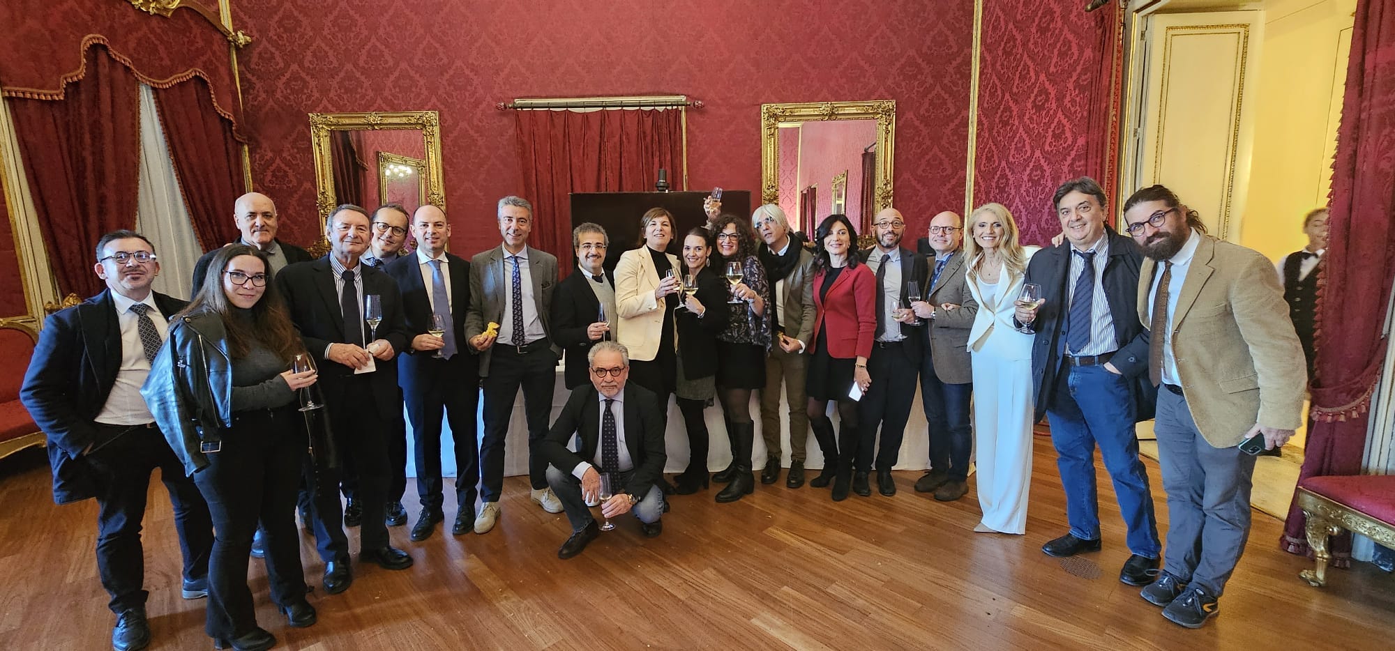 Il presidente dell'Ars Gaetano Galvagno con tre giornalisti della Stampa parlamentare siciliana