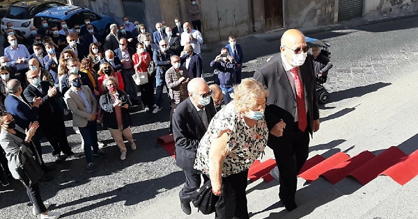 E lo sposo sorprende tutti. Non arriva in auto, ma a piedi. Mano nella mano con l’inseparabile Maria (da 55 anni al suo fianco), Pino Firrarello sbuca all’improvviso da una traversa. Lo osannano, lui fa un cenno col capo. E sale, con lenta emozione, la scalinata, senza calpestare il tappeto rosso che gli hanno srotolato. Non siamo in chiesa. Ma al municipio di Bronte. La sua tana, il suo habitat naturale. E, secondo il 45% dei brontesi, non il suo ospizio.