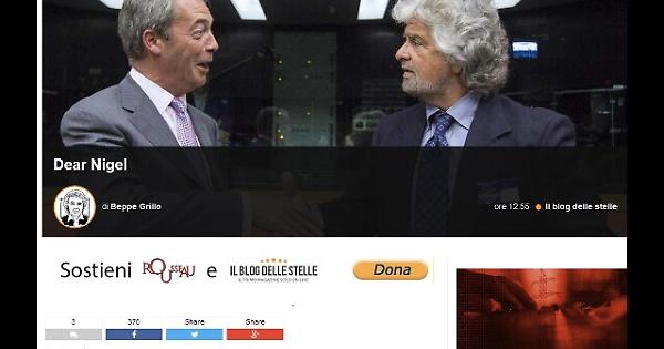 ROMA, 9 GEN - Beppe Grillo dà l'addio a Nigel Farage leader dell'Ukip e alleato del M5s nel Parlamento europeo. "Le nostre strade si sono divise" dice Grillo dal blog dove sottolinea la decisione del M5S di andare in un nuovo gruppo politico nel Parlamento europeo da dove "poter affrontare con più concentrazione le prossime sfide". Pronta la replica del copresidente del gruppo Efdd e fondatore dell'Ukip Nigel Farage: "I 5 stelle si sono uniti all'establishment dell'Ue. Beppe Grillo - afferma Farage - si unirà ora all'establishment eurofanatico di Alde, che supporta il Ttip, l'immigrazione di massa e l'esercito europeo ma si oppone alla democrazia diretta".
