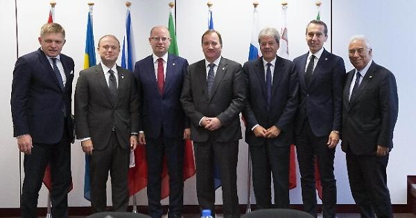 BRUXELLES, 20 OTT - Minivertice dei leader socialisti del Consiglio europeo in corso nella sede della delegazione italiana. Secondo quanto si apprende, con il premier Paolo Gentiloni sono riuniti lo slovacco Robert Fico, il ceco Bohuslav Sobotka, il portoghese Antonio Costa, il maltese Joseph Muscat, l'austriaco Christian Kern e lo svedese Stefan Lofven.