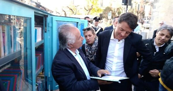 MATERA, 21 OTT - Il segretario del Pd, Matteo Renzi, è stamani a Matera, Capitale europea della Cultura per il 2019: poco fa è arrivato nel centro storico della città lucana a bordo del "Bibliomotocarro", guidato dal maestro Antonio La Cava che da anni gira per l'Italia per spingere i più giovani alla lettura. La tappa materana del tour "Destinazione Italia" proseguirà con la visita a Palazzo Lanfranchi, dove sono esposti alcuni quadri di Carlo Levi.