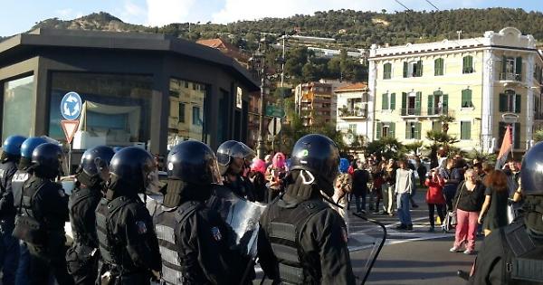 GENOVA, 7 AGO - Ancora tensioni a Ventimiglia, al confine tra Italia e Francia, dove ieri sera un poliziotto è morto d'inferto durante i tafferugli con una quarantina di attivisti No borders. Tre cittadini francesi sono stati fermati dalla polizia italiana alla frontiera di Ponte San Ludovico, in territorio italiano. Secondo fonti di polizia, avevano mazze e coltelli e cappucci neri e sono stati sottoposti a fermo di pg. Tra le ipotesi quella che i tre volessero partecipare alla manifestazione in programma per oggi a Ventimiglia. Sempre la polizia ha arrestato due rappresentanti del movimento No Border e ha emesso 11 fogli di via obbligatori a carico di altrettanti antagonisti che ieri sera hanno preso parte ai tafferugli poco lontano dal campo di temporanea accoglienza di Ventimiglia.