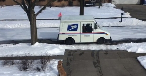 I Golden Retriever si sa sono dei cani particolarmente speciali, buoni e affettuosi. Moose è uno di loro e ha l'abitudine di aspettare, davanti casa nel Michigan, il postino: non appena l'uomo scende dal suo furgoncino, il cane lo accoglie facendogli festa.