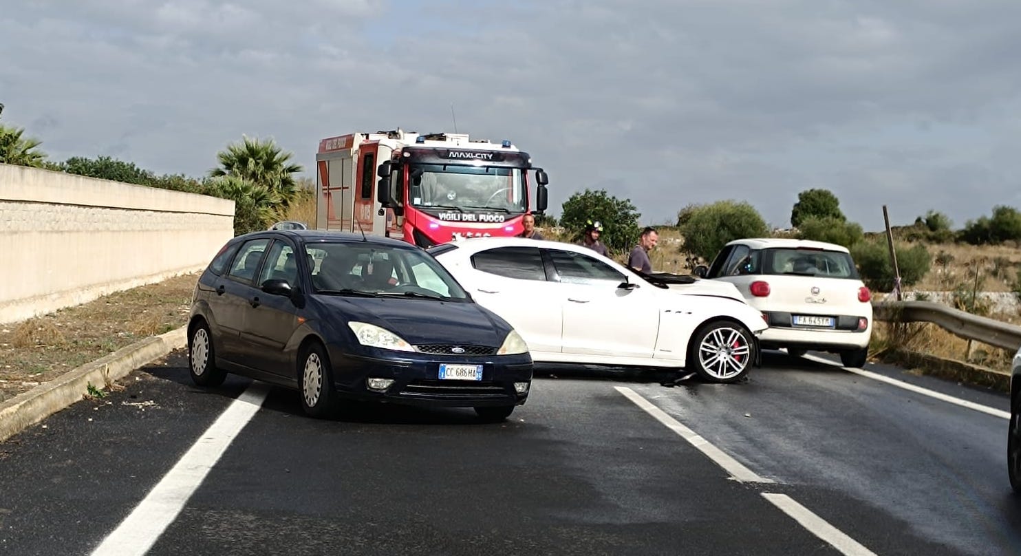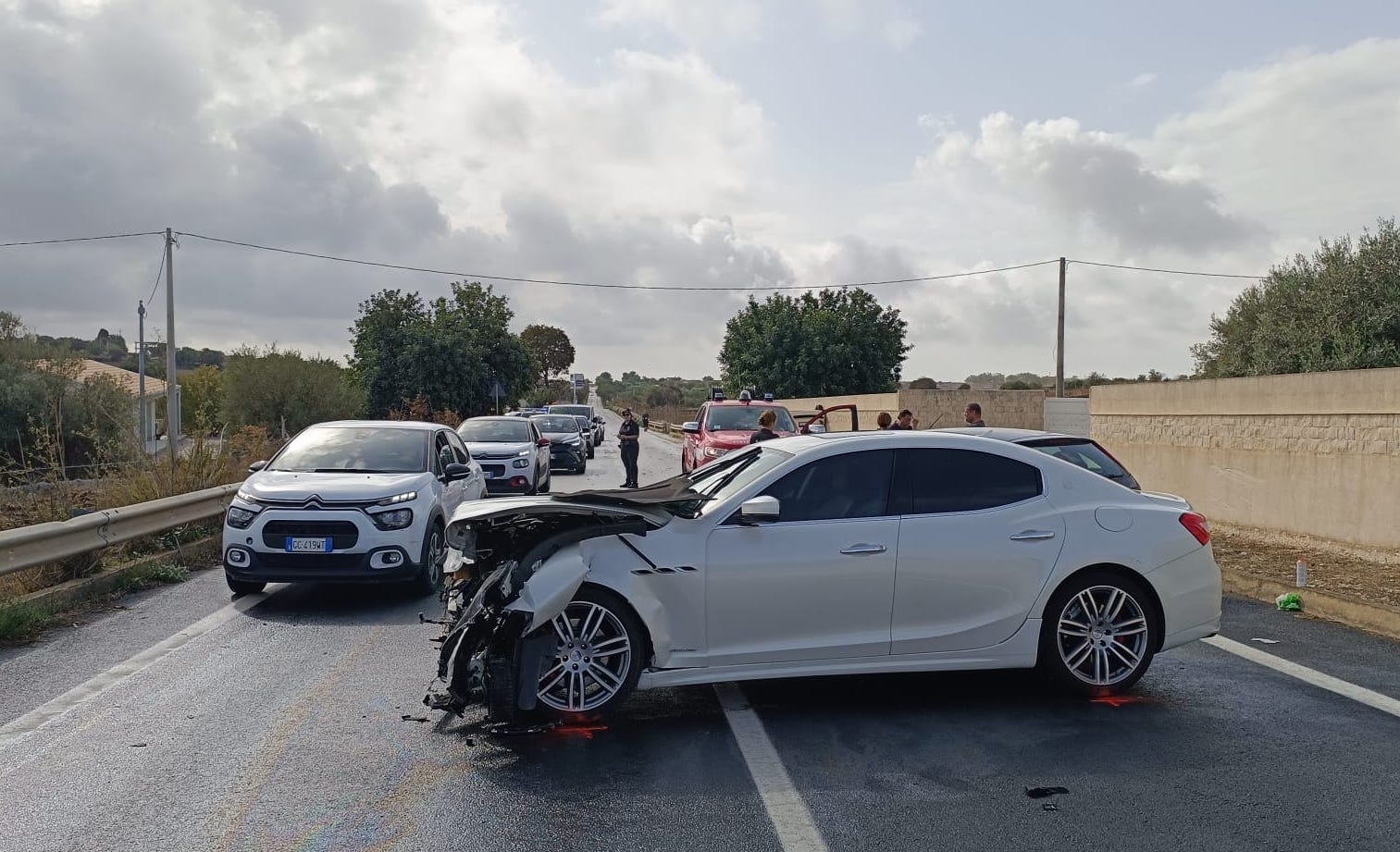 Il sinistro si è verificato sulla Modica-Scicli. Secondo le prime ricostruzioni, una Maserati che procedeva in direzione di Modica ha perso il controllo a causa della strada bagnata scontrandosi frontalmente con una Lancia Ypsilon che viaggiava in direzione di Scicli. Una Ford Focus che seguiva la Ypsilon ha cercato di evitare l’impatto, ma è stata coinvolta di striscio nell’incidente. Nella Maserati e nella Ford viaggiavano solo i conducenti, nella Ypsilon c’erano il conducente e un passeggero. Sul posto i vigili urbani del Comune di Scicli