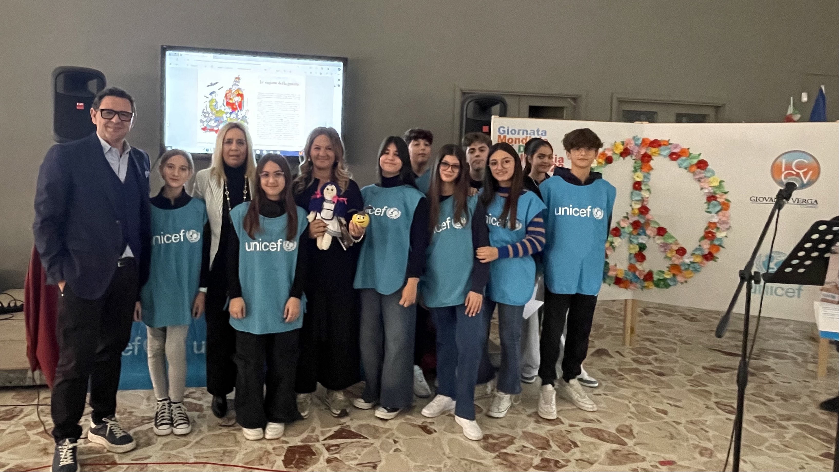 “In questo momento estremamente difficile per la sopravvivenza e il benessere di molti a causa dei conflitti - ha spiegato nel suo intervento il vicepreside e referente Unicef, il prof. Luigi Bellassai - abbiamo voluto ricordare l’importanza dell'Art.38 della Convenzione: Ogni bambino ha diritto a essere protetto dalla guerra. Un diritto che, se non garantito, vede negati tutti gli altri: il diritto a nutrirsi, crescere, prosperare, vivere. I diritti dei bambini sono diritti umani. In tutto il mondo, gli attacchi indiscriminati ai civili continuano senza sosta: più di 400 milioni di bambini vivono in aree di conflitto".