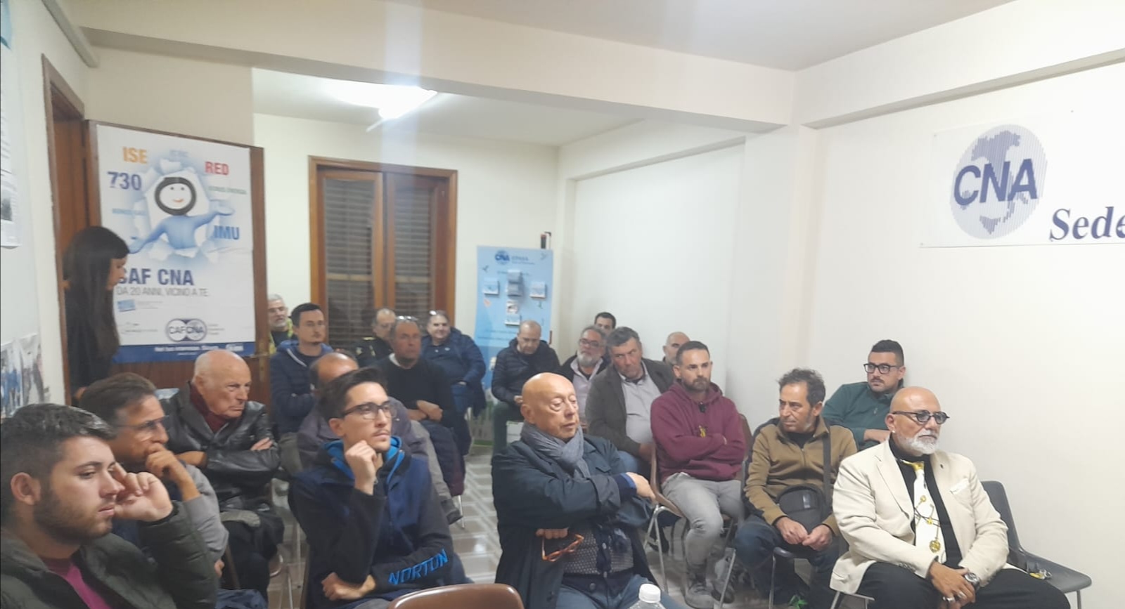 La Cna territoriale di Ragusa sta tenendo un ciclo di incontri con i piccoli e medi imprenditori per illustrare a ciascuno di loro quali le opportunità riservate per favorirne la crescita. E’ questo il senso degli appuntamenti condotti dal presidente territoriale Giuseppe Santocono e dal segretario territoriale Carmelo Caccamo che già martedì sera a Scicli (nella foto sopra) e ieri sera a Modica (nella foto sotto) hanno incontrato una folta delegazione di artigiani. Gli incontri proseguiranno il 27 novembre a Ragusa, il 28 a Comiso, il 29 a Chiaramonte Gulfi, il 30 a Ispica e si chiuderanno il 4 dicembre a Vittoria.