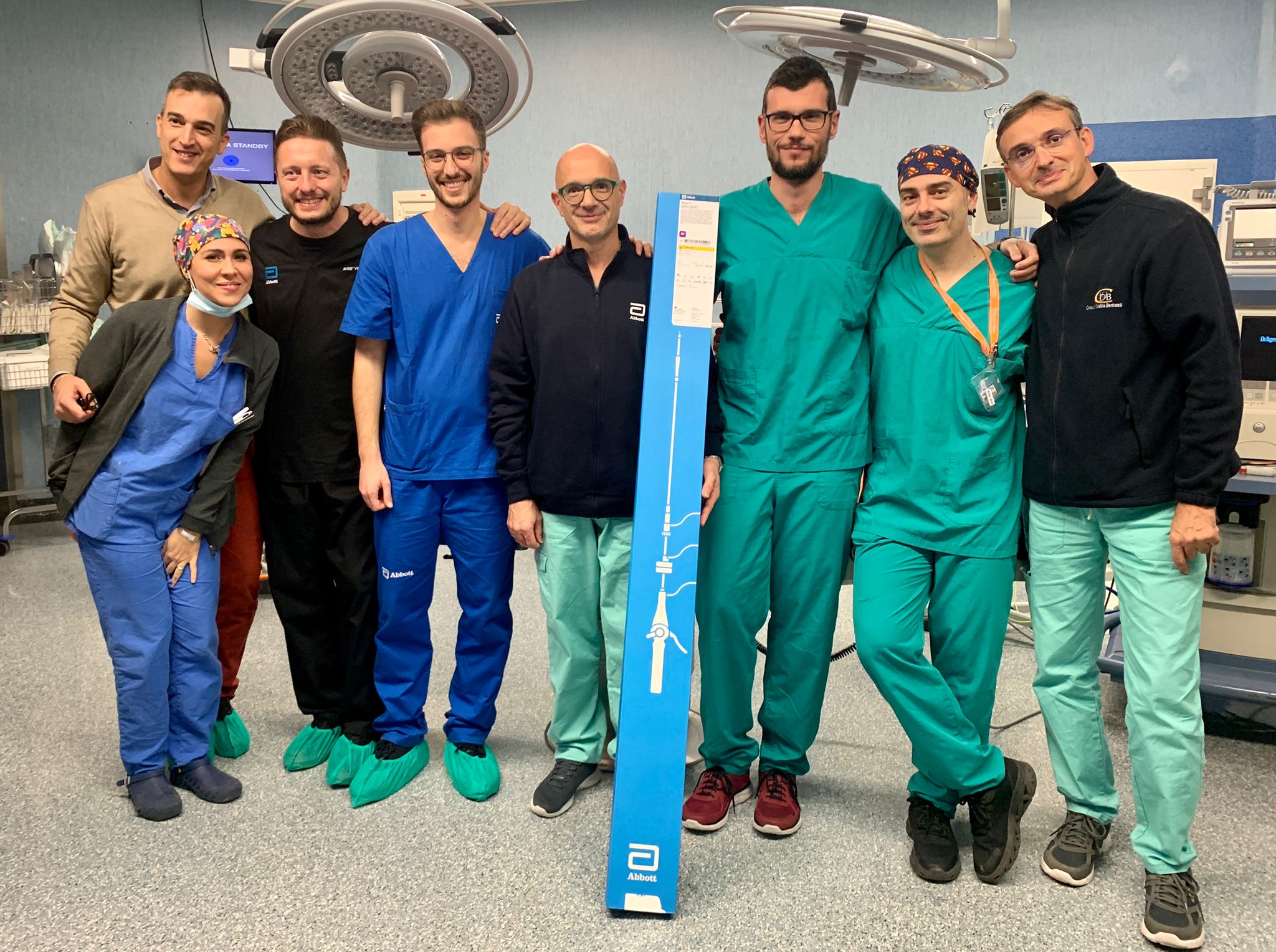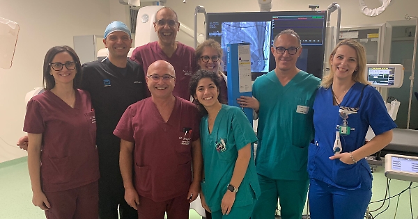 Il dispositivo AVEIR VR, reso disponibile in commercio in Europa da poche settimane, sarà in futuro affiancato da un analogo dispositivo dedicato alla stimolazione della camera atriale, di recente introdotto negli Stati Uniti. “I due dispositivi potranno comunicare tra loro autonomamente – spiega il dott. Sgarito - per gestire adeguatamente il ritmo del paziente, con una modalità rivoluzionaria rispetto a quanto disponibile fino ad ora; saremo quindi in grado di personalizzare la terapia adeguandola alle necessità cliniche del paziente” (nella foto sotto lo staff del civico di Palermo).