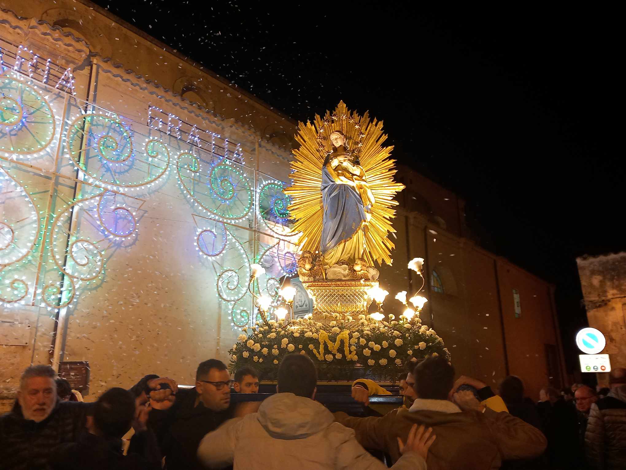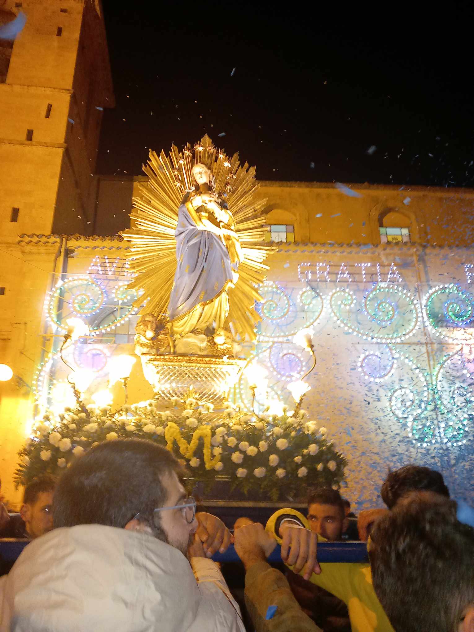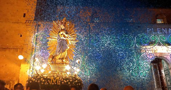 Sono stati numerosi i fedeli che, ieri sera, hanno animato la processione in onore dell’Immacolata, ultimo atto di una festa che, a Ragusa, affonda le radici nelle tradizioni dei secoli andati (è fatta risalire addirittura al 1743 la recita dell’atto di affidamento della città alla protezione della Vergine, lo stesso celebrato la sera della vigilia). All’uscita dalla chiesa di San Francesco in piazza Chiaramonte, nella città antica di Ibla, l’incedere del simulacro della Santa Madre di Dio è stato salutato da grida di giubilo e da una pioggia di cartigli colorati. Il bianco e l’azzurro i colori da sempre accostati alla Vergine e che hanno rappresentato un elemento scenografico di indubbio valore.