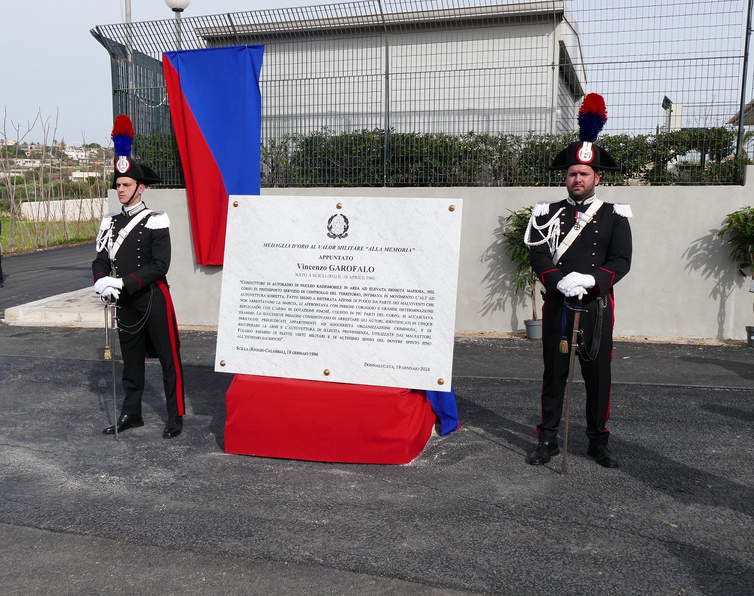 Questa mattina, alla presenza del comandante della Legione Carabinieri “Sicilia”, Generale di Divisione Giuseppe Spina, e del sindaco di Scicli Mario Marino, è stata intitolata la Caserma dei Carabinieri di Donnalucata all’appuntato Vincenzo Garofalo, Medaglia d’Oro al Valor Militare “alla memoria”, in occasione della ricorrenza del 30° anniversario della sua morte avvenuta per mano della criminalità organizzata mafiosa, quando fu trucidato mentre era in servizio lungo l’autostrada A3, all’altezza dello svincolo per Scilla, unitamente all’Appuntato Antonino Fava. Alla cerimonia, organizzata dal Comando Provinciale Carabinieri di Ragusa e dall’Amministrazione comunale, hanno partecipato le autorità civili, militari e religiose regionali, provinciali e locali, le sezioni dell’Associazione Nazionale Carabinieri e le rappresentanze delle Associazioni Combattentistiche e d’Arma presenti in provincia, delegati della Rappresentanza Militare, le scolaresche dell’Istituto Comprensivo “E. Vittorini” e la cittadinanza.