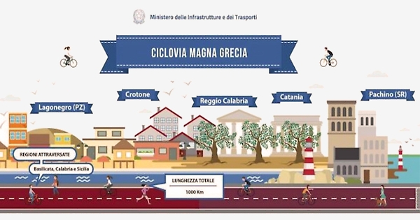 Nel 2016 e nel 2017 il Governo Nazionale inseriva nella legge di stabilità la somma di 374 milioni di euro per la realizzazione di 10 ciclovie, fra cui la ciclovia della Magna Grecia Lagonegro-Pozzallo che doveva attraversare tre Regioni: la Basilicata, la Sicilia e la Calabria, quest’ultima come ente capofila.