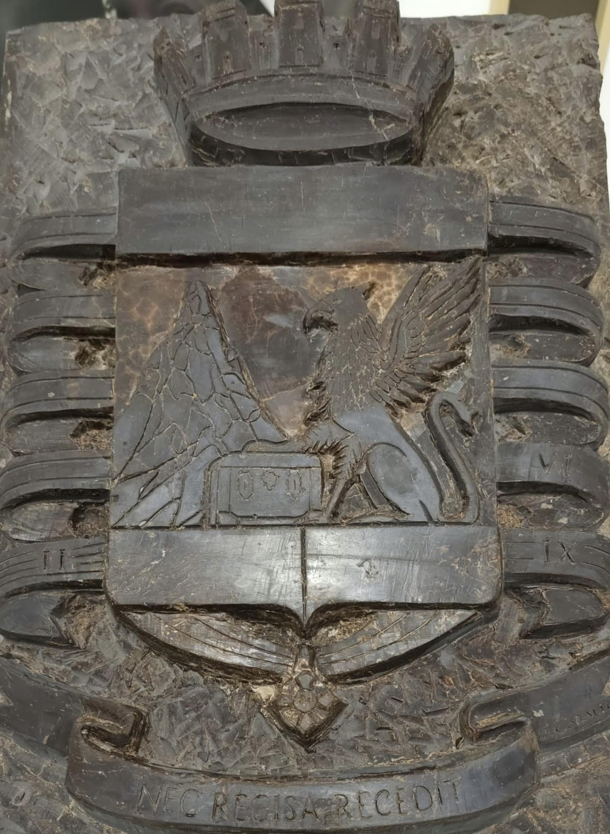 Particolare attenzione ha riposto il generale Lorusso alla storia del cioccolato di Modica, in particolare alla documentazione archivista, ma anche alle sculture di cioccolato, fra le quali ha potuto ammirare quella riproducente lo stemma della Guardia di Finanza includente il motto araldico “Nec Recisa Recedit”, scultura in cioccolato realizzata a Chocomodica 2023 dall’artista Elisa Corallo (nella foto sotto).