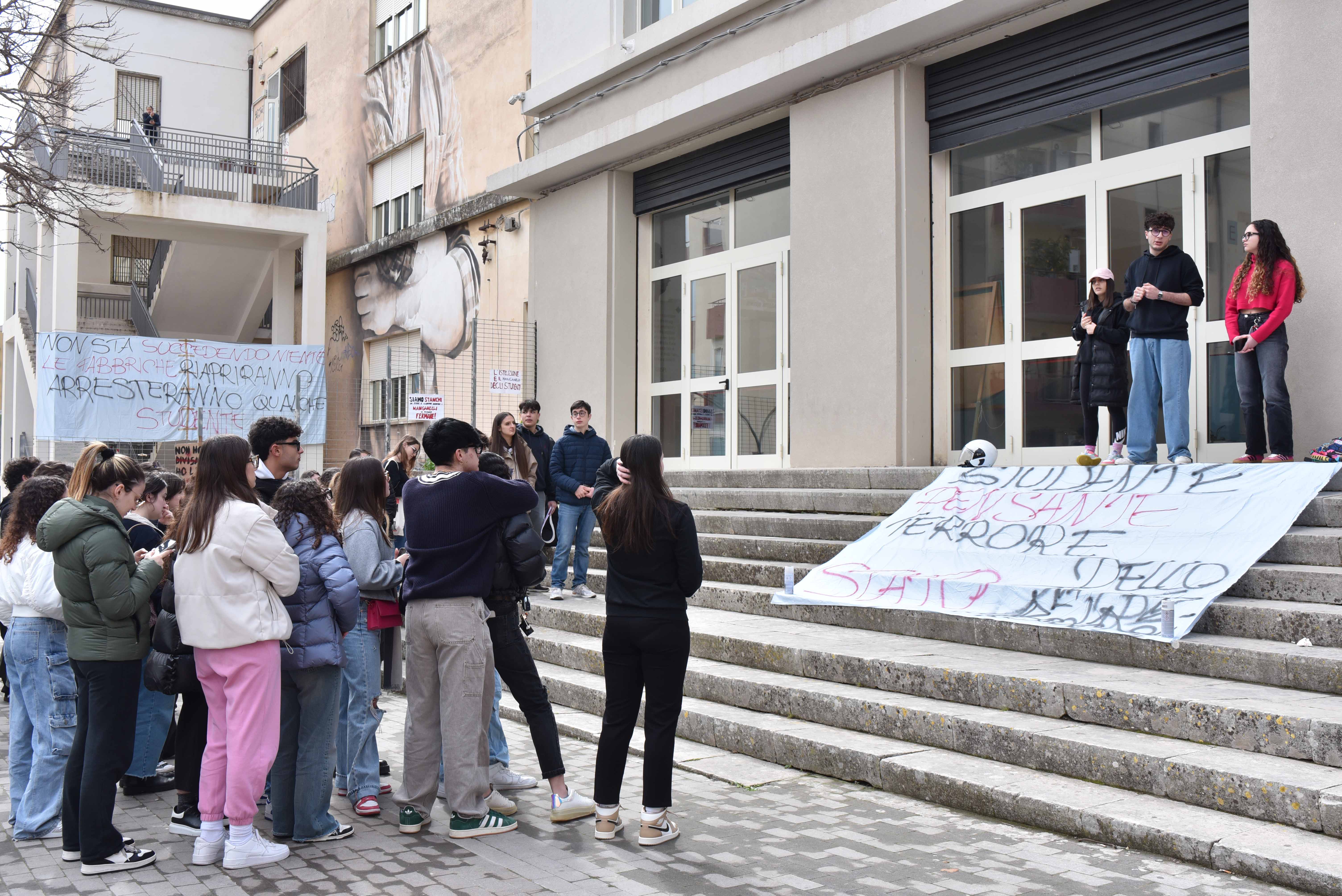 “L’uso dei manganelli sugli studenti impegnati in una protesta pacifica contro l’orrore della guerra – è scritto tra l’altro in un documento predisposto dalle varie classi – solleva interrogativi profondi sulla gestione delle manifestazioni pacifiche e sulla tutela dei diritti fondamentali nella nostra società democratica”. La manifestazione, che era cominciata dinanzi all’edificio scolastico, ha poi cercato di spostarsi verso piazza Matteotti, di fronte a palazzo di Città. Ma essendo sprovvista di qualsivoglia autorizzazione, gli organizzatori sono stati dissuasi dalla Digos a portare avanti questa intenzione per cui sono rimasti sul posto.