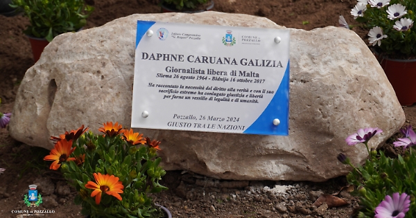 In occasione della “Giornata dei Giusti” 2023-2024, l’istituto Rogasi di Pozzallo ha voluto dedicare una targa ricordo con la piantumazione di un albero, presso il “Giardino dei Giusti”, all’interno della Villa Comunale a Daphne Caruana Galizia, uccisa da un autobomba a Malta il 16 ottobre 2017 per la sua attività professionale di denuncia contro corrotti e criminali del suo paese.
