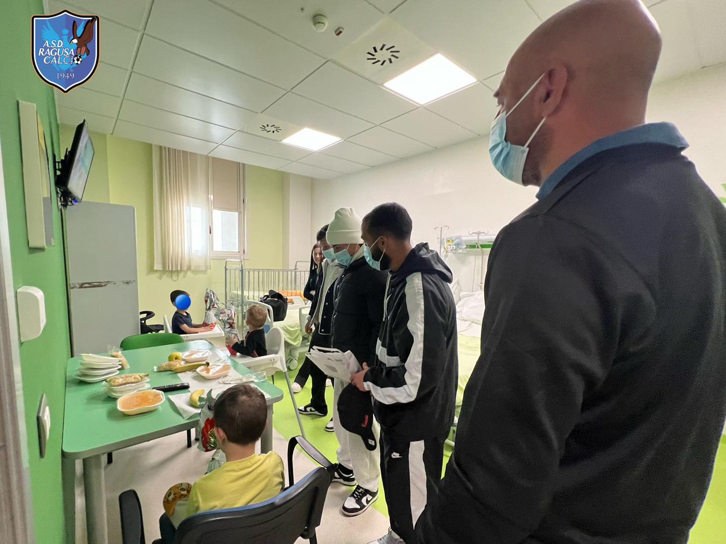 I giocatori del Ragusa calcio in visita al reparto di Pediatria dell'ospedale Giovanni Paolo II