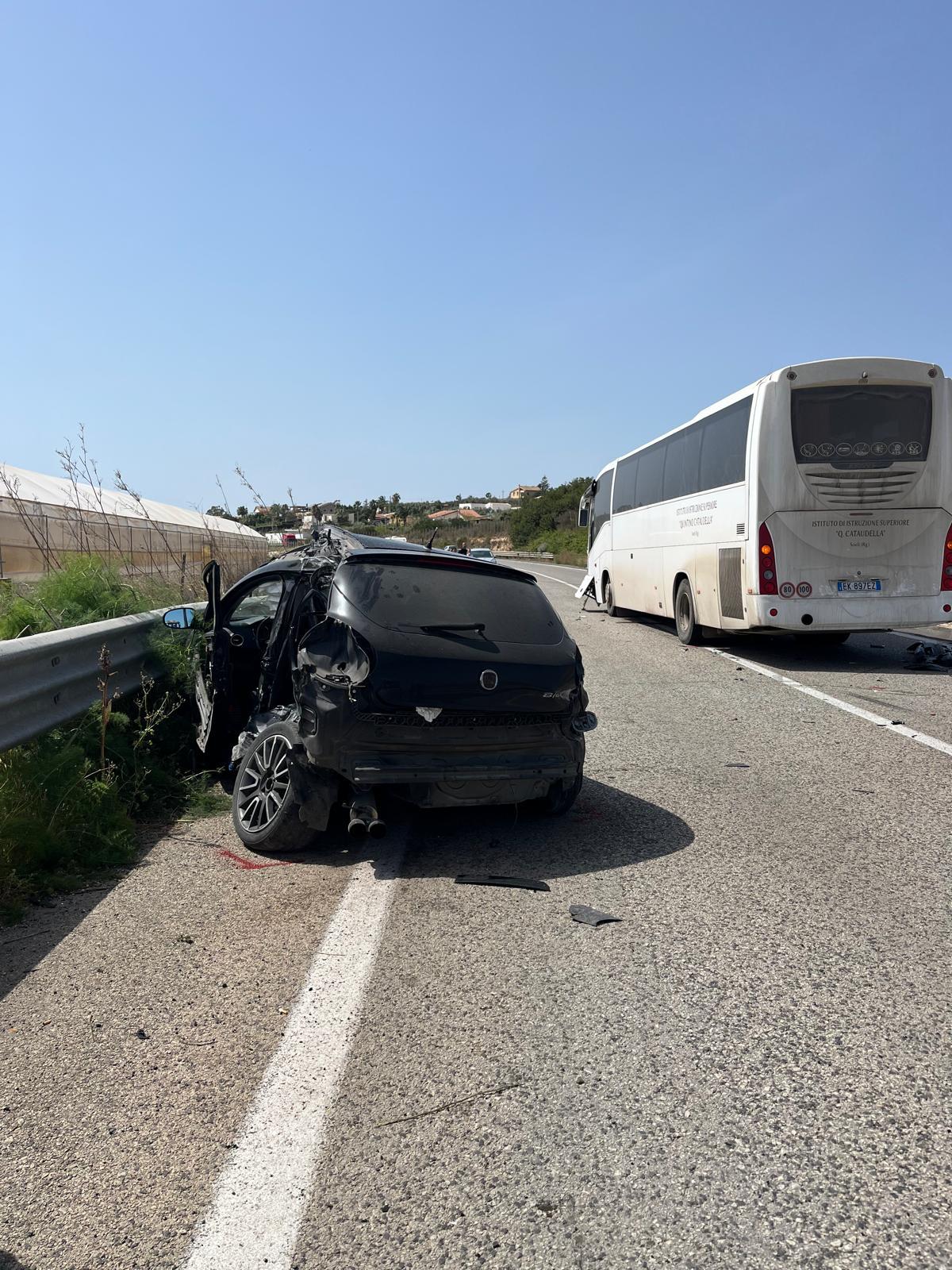 Donnalucata, scontro tra un'auto e il bus che trasportava gli studenti dell'Agrario