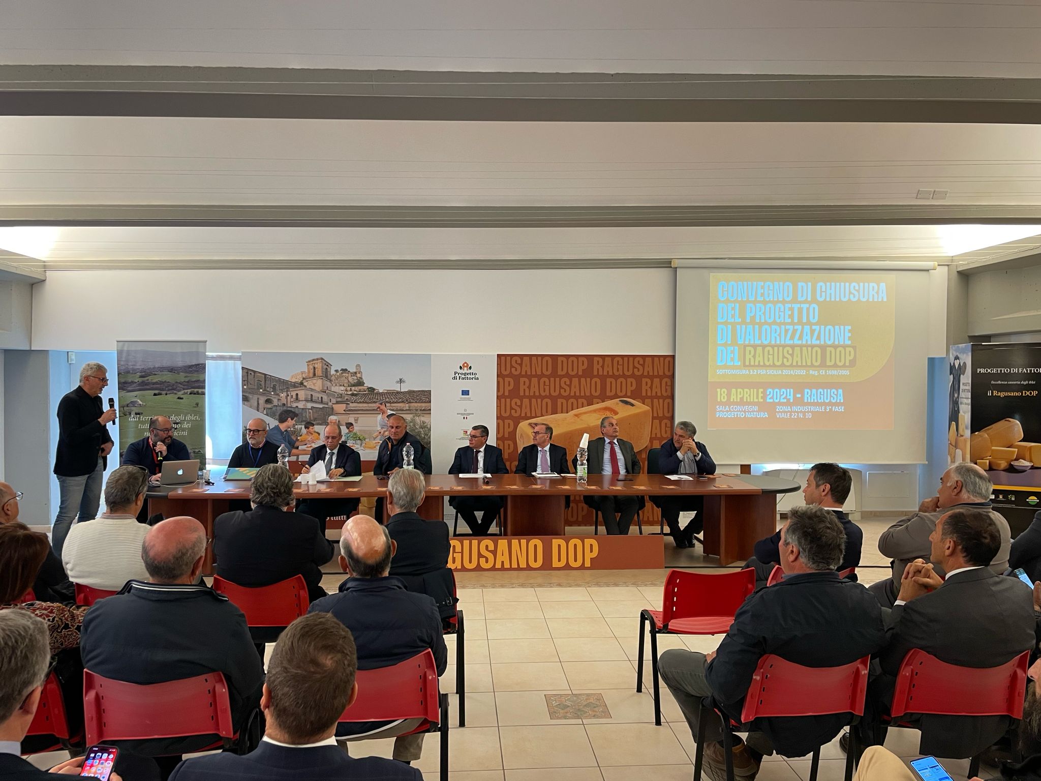 Tra gli intervenuti di stamani c’erano il sindaco di Ragusa, Peppe Cassì, i deputati regionali Nello Dipasquale e Giorgio Assenza, l'assessore allo Sviluppo Economico di Ragusa, Giorgio Massari, il direttore del Consorzio Ragusano Dop, Enzo Cavallo, il presidente di Legacoop Sud Sicilia, Giovanni Rollo. Relatori sono stati Salvatore Cascone, direttore di Progetto Natura, Giuseppe Cascone nella duplice veste di titolare dell’azienda Occhipinti Latticini di Fattoria e di presidente del Consorzio Ragusano Dop, Carlo Catanossi presidente di Natura e Qualità, Giorgio Ragusa, coordinatore del “Progetto di Fattoria”, Carmelo Saccone dell’agenzia di comunicazione MediaLive. A chiudere i lavori, in rappresentanza della Regione, Giorgio Carpenzano dirigente capo dell’Ispettorato dell’Agricoltura di Ragusa. "Progetto di Fattoria" ha segnato un capitolo importante nell’attività promozionale del Ragusano DOP, ma il viaggio non finisce qui perché si proseguirà con altre azioni dedicate a questa eccellenza gastronomica siciliana, pronta a conquistare nuovi palati.