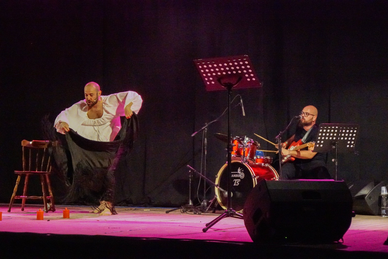 Il primo appuntamento del festival, il monologo teatrale “Viaggio in Sicilia”, tratto da “La luce e il lutto” di Bufalino, ha visto protagonista l’attore e regista Alessandro Romano, accompagnato dalle melodie della chitarra e delle percussioni di Andrea Iozzia. Romano ha catturato il pubblico con la sua interpretazione intensa e coinvolgente, evocando la profonda connessione tra il viaggio e la scoperta di sé stessi.