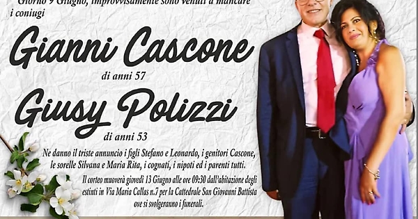 La magistratura ha dato il nulla osta. Restituendo le salme alla famiglia. I funerali di Gianni Cascone e Giusy Polizzi, i due musicisti venuti tragicamente a mancare dopo il grave incidente stradale della notte tra sabato e domenica scorsi, si terranno giovedì alle 10 in Cattedrale. E' previsto un grande afflusso di amici e parenti. I due erano ben voluti da tutti. Hanno lasciato due figli. Risiedevano in zona Puntarazzi, alla periferia della città.