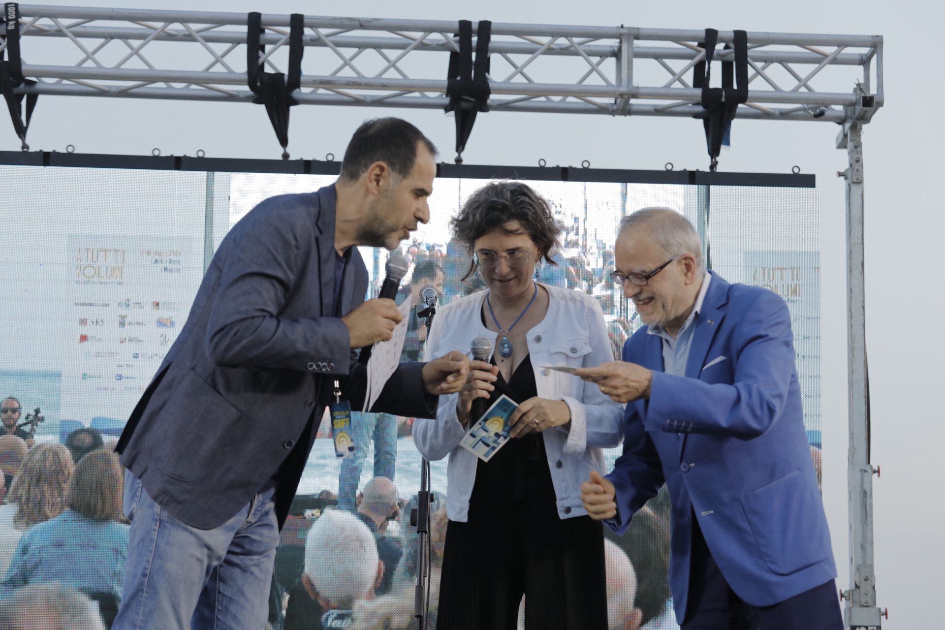 “In questi quindici anni A Tutto Volume è cresciuto costantemente dimostrando di aver vinto la scommessa di portare al centro dell’attenzione i libri in una terra in cui si legge meno che altrove. Oltre 50 le autrici e gli autori ospiti, che sottolineano l’importanza del festival”. A condurre la serata è Paolo Verri, codirettore di “A Tutto Volume” insieme a Antonio Pascale, Massimo Polidoro e Federico Taddia. Verri apre la celebrazione dei Settant’anni della tv pubblica invitando a salire sul palco il Trio Casamia che nel corso della serata intervallano gli ospiti suonando alcuni jingle storici della televisione in chiave jazz.