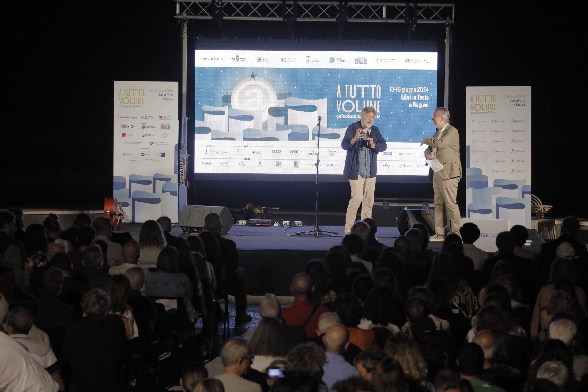 Ultima ospite in dialogo con Paolo Verri è stata la linguista Yasmina Pani che ha raccontato lo straordinario potere della satira attraverso il programma di Enrico Ghezzi, “Blob”. Durante la serata sono stati simbolicamente premiati, con la consegna delle prime tre cartoline celebrative numerate e dedicate ai 15 anni del festival, tre intellettuali di Ragusa, appassionati lettori e amici da sempre della manifestazione che prosegue questo venerdì e sabato a Ragusa superiore per poi concludersi domenica a Ragusa Ibla. A sostegno del festival il Comune di Ragusa, la Regione Siciliana, l’Ars, il Libero Consorzio Comunale di Ragusa, l’Asp Ragusa, il Centro per il libro e la lettura, la destinazione turistica Enjoy Barocco, Alib, Camera di Commercio del Sud Est, Banca Agricola Popolare di Ragusa, Timac Agro e altri partner privati. Info e programma su www.atuttovolume.com