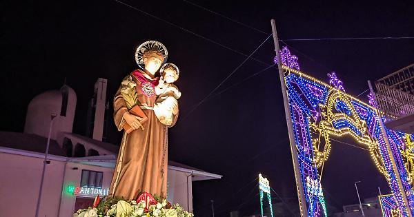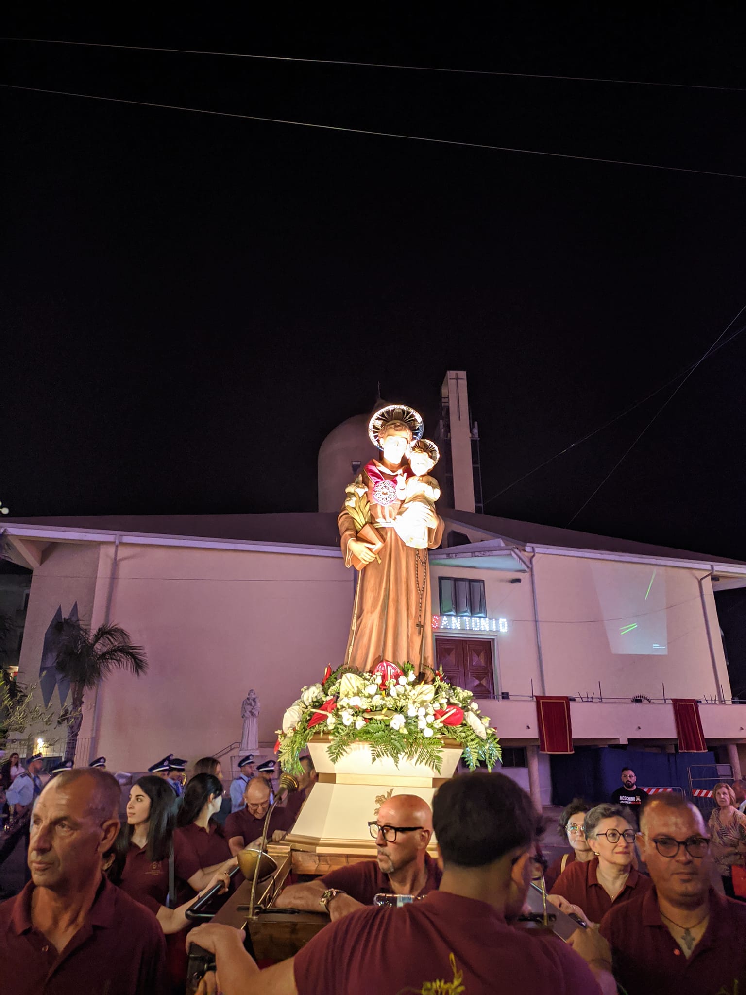 All’arrivo della processione sul sagrato della chiesa, si è svolto uno spettacolo di luci, musica ed effetti scenografici. Subito dopo, a ricordo della carità di Sant’Antonio, la benedizione e la distribuzione del pane. Quindi, il rientro del simulacro in chiesa e la preghiera di affidamento alla sua intercessione. Oggi si continua. Alle 8 il Rosario, alle 8,30 la santa messa, alle 18,30 il Rosario meditato, alle 19 la santa messa presieduta dal parroco, il sacerdote Enzo Barrano.