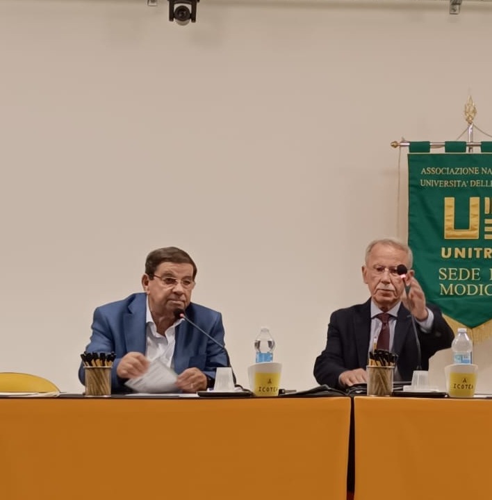 A chiusura dell’anno accademico 2023/2024, l’Unitre di Modica ha tenuto il preannunciato incontro per tracciare un bilancio sull’attività svolta e per un confronto coi soci sul ruolo, sempre più qualificato, dell’associazione. I lavori sono stati presieduti da Enzo Cavallo che, con a fianco il segretario Orazio Frasca, ha riferito sull’impegno del consiglio direttivo e sulle strategie operative che, nell’ultimo anno, hanno motivato e guidato tutta l’attività nel suo insieme ed attraverso le numerose iniziative che si sono susseguite ed hanno richiamato l’attenzione degli iscritti e di quanti nel corso dell'anno si sono associati contribuendo a riportare l’Unitre ai livelli preCovid in termini di iscritti (nella foto sotto Frasca e Cavallo).