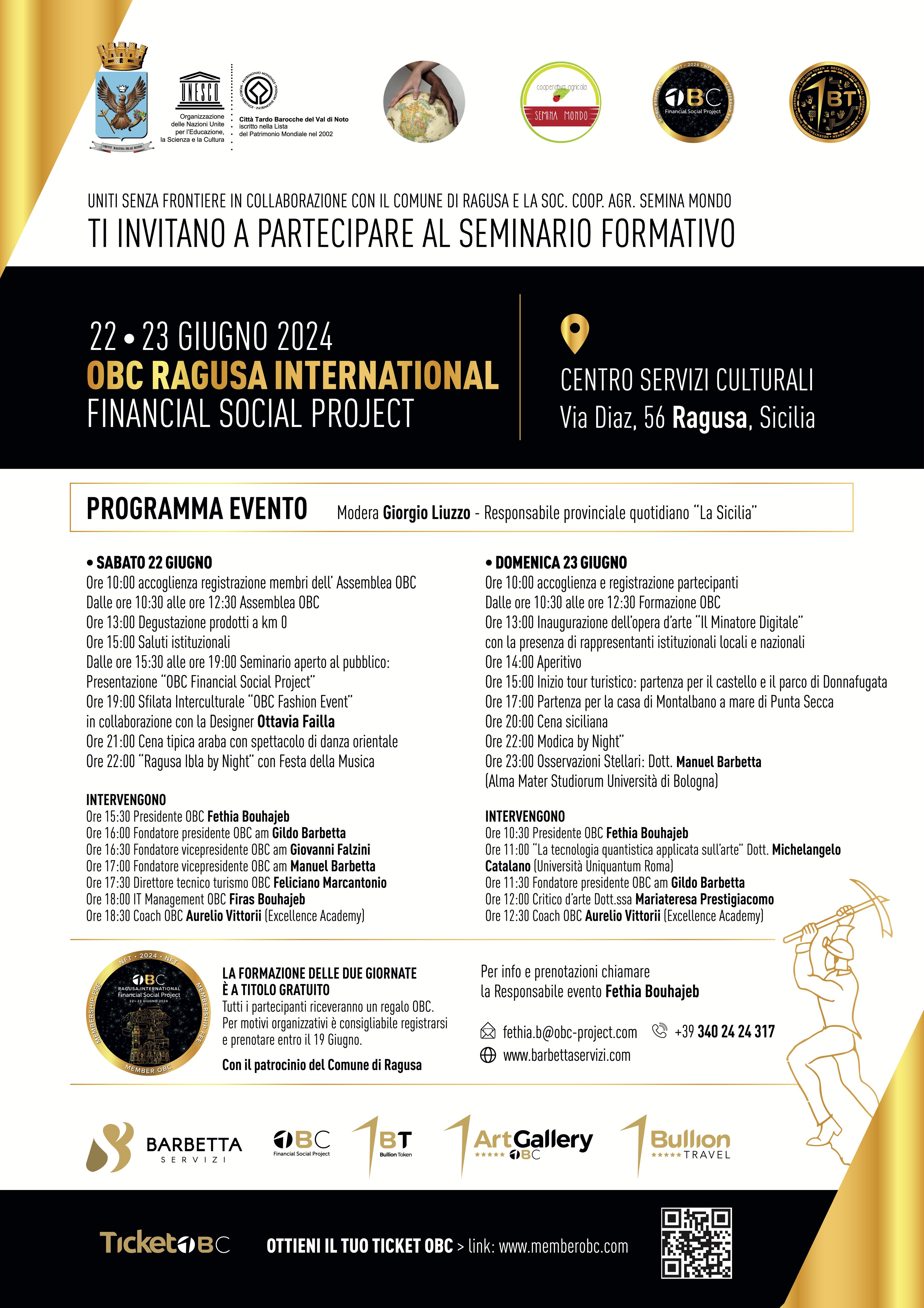 All’interno della Blockchain, saranno sostenute le opere d'arte digitali, a partire da questo bassorilievo scultoreo, eseguito ad opera del maestro Stefano Faccini e a seguire, attraverso le immagini della città di Ragusa, per la sua promozione nel mondo. Il minatore digitale sarà un incubatore di nuova energia e linfa vitale per tutti coloro che vogliano servirsene. Minatore quale vero e proprio generatore di economia circolare certificata e trasparente e democraticamente valida. Un esempio di come iniziare a generare economia verrà dato lo stesso giorno dell'inaugurazione con un esempio futuristico innovativo e unico al mondo. In conclusione “possiamo affermare - parole di Obc - che siamo pionieri di una nuova economia applicata nello specifico caso all'arte che collega il passato, il contemporaneo a futuro”. Domenica 23 giugno l'inaugurazione del bassorilievo scultoreo Obc, che sarà donato dall’imprenditore Obc Gildo Barbetta al Comune di Ragusa. Il bassorilievo è stato realizzato magistralmente dal maestro Stefano Faccini e sarà inaugurato al Centro servizi culturali di via Diaz intorno a mezzogiorno 12; la comunità locale aspetta trepidante il sicuro successo del pubblico. Le attese positive, afferma la fisica quantistica, non sono mai tradite.