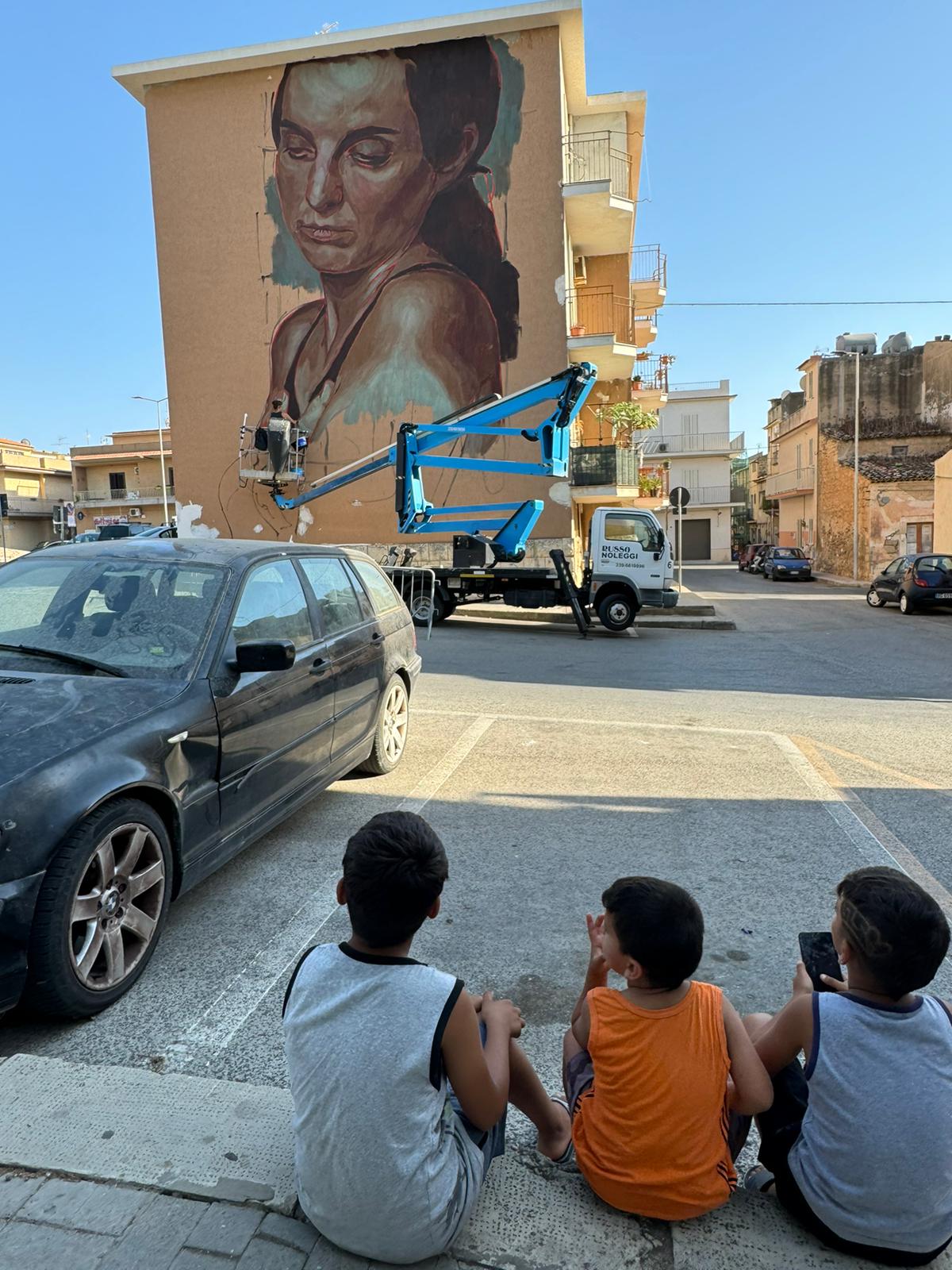 All’incrocio tra memoria e presente, storia e magia, muralismo e narrativa, in uno degli snodi cruciali del Mediterraneo per l’incontro fra popoli e culture, è iniziato “Crucivia”, il progetto di arte pubblica che coinvolge il comune di Santa Croce Camerina nello stesso solco che dal 2015, a Ragusa, ha dato vita a cinque edizioni FestiWall e poi a Bitume – industrial platform of Art, fino alle più recenti operazioni effettuate a Trapani e Comiso. Stavolta, protagonista dell’evento, in programma fino al 18 luglio, sarà Milu Correch, artista argentina fra le più note e talentuose nel panorama del nuovo muralismo contemporaneo, impegnata sul doppio prospetto che in Piazza degli Studi guarda gli istituti scolastici “Psaumide di Camarina” e “Fabio Besta”, spazio scelto per realizzare un’opera unitaria. Classe ’91, originaria di Buenos Aires, conosciuta per i grandi murali figurativi in cui ritrae la straordinarietà della gente comune raccontata in ambienti periferici e ammantata da atmosfere magiche, Milu dialogherà con un luogo frequentatissimo da tutte le famiglie santacrocesi, omaggiando al contempo l’interculturalità e la convivenza fra le varie comunità che abitano la “città del sole”.
