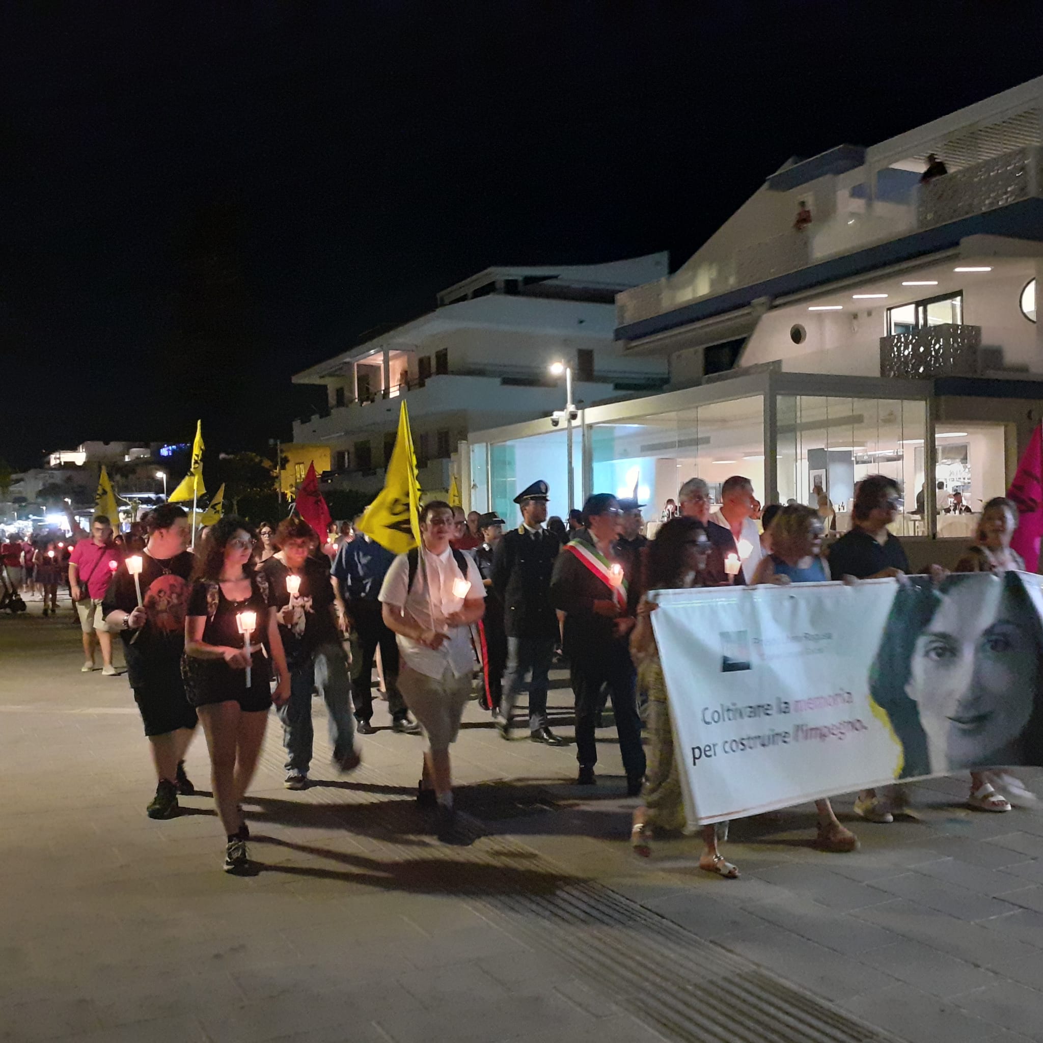 Anche quest’anno a Marina di Ragusa si è svolta, a 32 anni dalla strage di via D’Amelio, la fiaccolata in memoria di Paolo Borsellino, ucciso da un carico di tritolo nella sua auto, esplosa sotto la casa della madre. Lo stesso tritolo che, due mesi prima, aveva ucciso, a Capaci, il collega amico fraterno Giovanni Falcone. Il pensiero, durante la partecipata fiaccolata di ieri sera da piazza Duca degli Abruzzi a piazza Malta, è andato anche a Emanuela Loi, Claudio Traina, Walter Eddie Cosina, Agostino Catalano: la sua scorta.