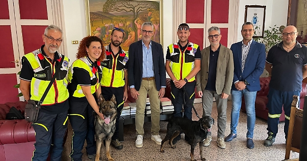 Il nucleo operativo cinofili dell’associazione volontari di Protezione Civile ha incontrato il sindaco Peppe Cassì, l’assessore alla Protezione civile Giovanni Iacono e l’assessore alla Tutela animali Andrea Distefano.
