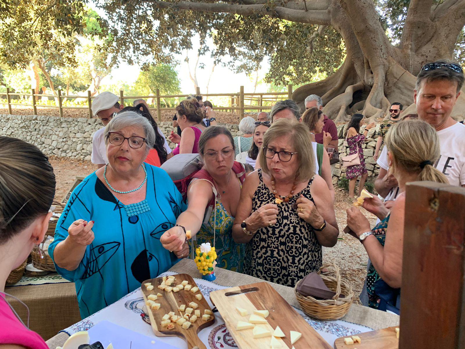 Puntando sulla divulgazione e la maggiore conoscenza della filiera corta e dei suoi buonissimi prodotti, si è svolta ieri pomeriggio al parco del Castello di Donnafugata, il primo appuntamento del progetto “Il Contadino al Castello” promosso da un’ats formata da imprese agricole e consorzi di tutela (Cerasuolo di Vittoria Docg e Ragusano Dop). Da un lato la promozione della filiera, dall’altro la valorizzazione dei prodotti agroalimentari locali, incentivando il consumo consapevole e sostenibile dei prodotti del territorio, secondo gli obiettivi del progetto finanziato dal Gal Terra Barocca tramite la sottomisura 19.2/16.4 del Psr Sicilia 2014-2022, teso a creare una rete tra operatori del settore primario per valorizzare e promuovere la domanda e l'offerta di prodotti locali. I produttori, veri protagonisti del progetto, hanno voluto porre in degustazione alcune delle eccellenze enogastronomiche iblee com il vino Cerasuolo di Vittoria Docg, famoso per il suo colore rosso rubino e il bouquet di sapori che si richiamo ai frutti rossi e spezie, o ancora il formaggio Ragusano Dop che ha deliziato i presenti con il suo sapore deciso e aromatico, mentre l'olio extravergine di oliva Dop Monti Iblei, con le sue note fruttate, ha arricchito il buon pane realizzato con grani antichi come il “senatore Cappelli”.
