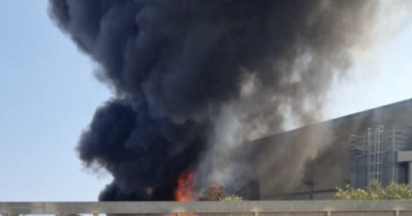 Sul posto squadre dei vigili del fuoco che stanno cercando di sedare le fiamme alimentate dal vento caldo per evitare che si propaghino e coinvolgano altre strutture.