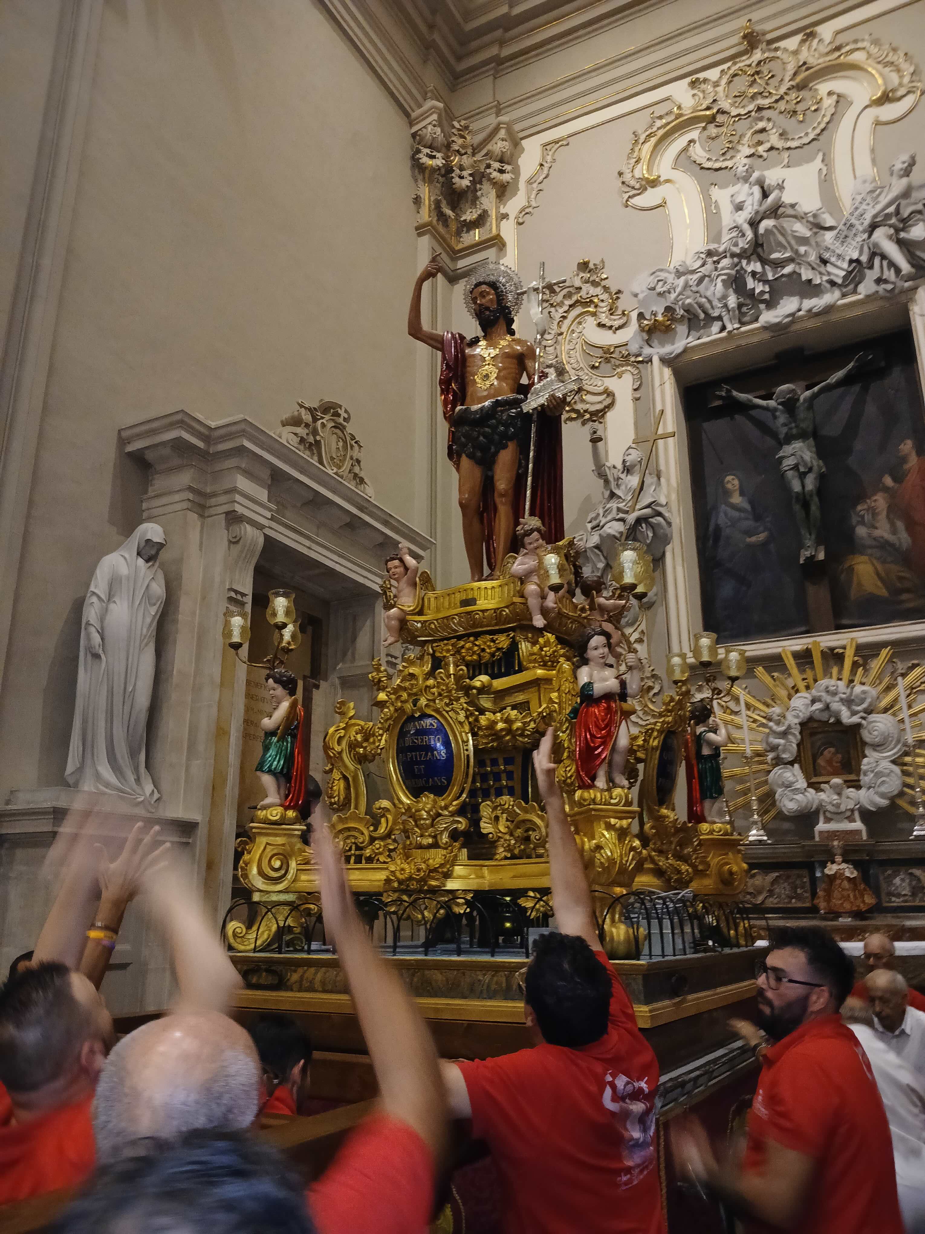 Emozioni profonde, quindi, che sono tornate a fare capolino, ieri sera, con l’apertura dei festeggiamenti dell’edizione 2024. E’ stato il parroco della Cattedrale, il canonico sacerdote Giuseppe Burrafato, a presiedere la celebrazione eucaristica a conclusione della quale è stata aperta la nicchia che ospita tutto l’anno il simulacro del Patrono poi sistemato sul baiardo processionale e, quindi, trasportato, tra le manifestazioni di giubilo dei presenti, nel braccio sinistro del transetto della chiesa, per la venerazione dei fedeli. Prima, inoltre, il simulacro si era affacciato dall’ingresso principale della Cattedrale come a salutare l’intera città. Un momento di notevole intensità che ha segnato, come meglio non si poteva sperare, l’avvio dei festeggiamenti di quest’anno.
