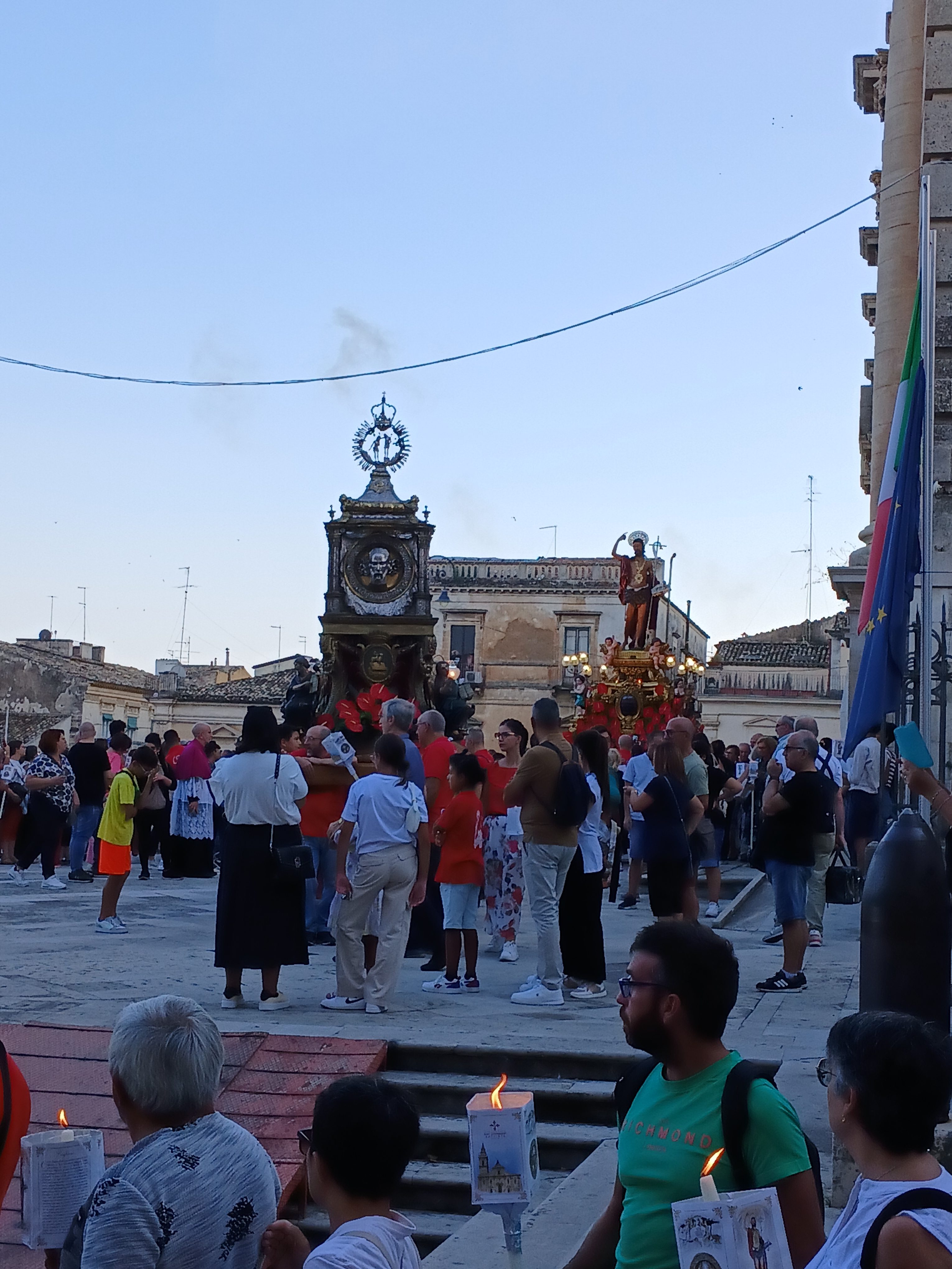 E’ il momento più atteso dai devoti e dai fedeli. E’ il momento in cui rendere onore, nella giornata in cui si fa memoria della solennità del martirio, al patrono principale di Ragusa, San Giovanni Battista. E in attesa che oggi il simulacro e l’Arca santa facciano rientro dalla chiesa di San Pio X, dopo essere rimasti tutta la notte nell’edificio di culto in seguito alla trionfale accoglienza di ieri sera, tutto è pronto per gli appuntamenti della grande giornata di festa che domani caratterizzerà l’intera città di Ragusa. Intanto, la Cattedrale rimarrà aperta tutto il giorno dalle 6 a mezzanotte. E’ possibile accendere le torce davanti al simulacro di San Giovanni nel giardino di corso Vittorio Veneto (foto Salvo Bracchitta).