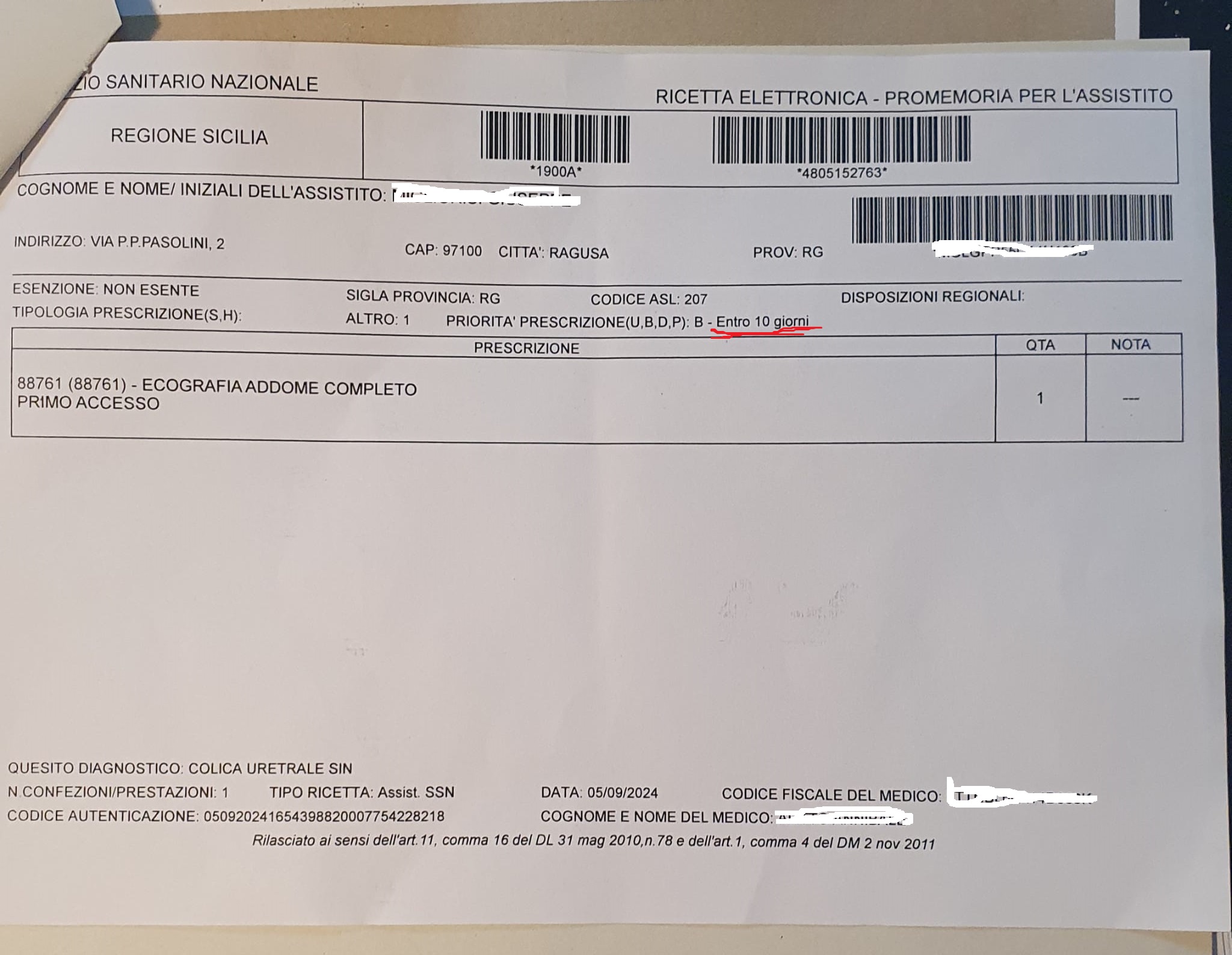 "Un altro esempio di invito ad arrangiarsi - continua il comitato - Il 6 settembre a fronte di una prescrizione per una ecografia addominale da eseguire entro 10 giorni il Cup “sforna”  una prenotazione per il 3 marzo 2025. Ovviamente anche per questo caso il documento dell’Asp non lascia dubbi interpretativi. Ci spiace dover rilevare che nonostante le frequenti interlocuzioni con il direttore generale, e i vertici di vari settori, alla declamazione delle buone intenzioni non corrispondono sostanziali e costanti misure organizzative. Appena due mesi fa veniva sbandierata la decisione di aver contrattualizzato ben 7244 prestazioni aggiuntive rispetto alle ordinarie. Insomma l’annuncio trionfale di poter ridurre le liste di attesa per 1022 risonanze magnetiche, 834 Tac e 5388 ecografie. A questo punto occorre fare chiarezza.  Nonostante le sedicenti  “buone intenzioni" notiamo una evidente frattura tra le direttive emesse dal massimo vertice aziendale e i risultati concreti per garantire il diritto al monitoraggio e cura dei pazienti".
