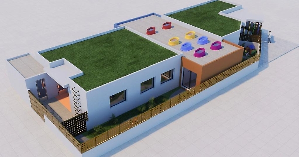 L’asilo si svilupperà al piano terra e avrà un’area giochi sul terrazzo. La struttura sarà del tutto autosufficiente da un punto di vista energetico grazie ai pannelli solari. Una curiosità: per rendere ludico e accogliente agli occhi dei bambini il luogo della loro formazione è stato scelto come elemento architettonico riconoscibile e identitario una teoria di matite colorate come pilastri all’ingresso del nido.