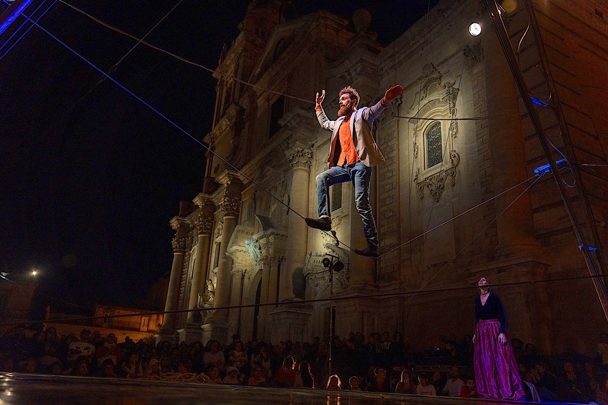 Ogni edizione di Ibla Buskers ha un focus speciale, e quest’anno il festival guarda in alto, con il progetto “Volante”, dedicato alle arti aeree. Tra i protagonisti di questa spettacolare sezione troviamo Lorena Menade con la corda volante, Paola Caruso con il trapezio ballant e Nur Cimenci che incanta il pubblico con la sua sospensione capillare. Questi spettacoli sfidano la gravità e incantano il pubblico, evocando la storia del trapezista Henry Blondeau, che nel 1890 divenne leggenda volando sulla sua mongolfiera sopra Ragusa durante la festa di San Giovanni.